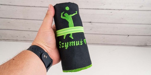 У рушник вшита практична гумка, яка дозволяє згорнути рушник у рулон, який займає зовсім небагато місця, згорнути мокрий рушник у «кульку» або повісити рушник де завгодно.