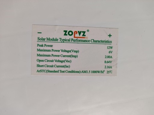 - Монокристалічна панель 12W, 6V,