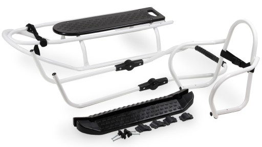 - спальник кладеться на спинку санок, дно кріпиться до сидіння за допомогою липучок
