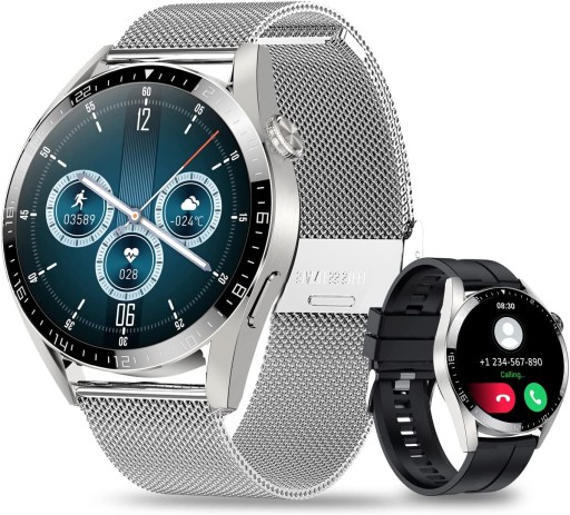Чоловічий смарт-годинник Voigoo з функцією телефону, персоналізований екран 1,32 дюйма, 20 спортивних режимів, крокомір, монітор артеріального тиску, кисню в крові та пульсу, калорій тощо для iOS та Android, 2 ремінці.