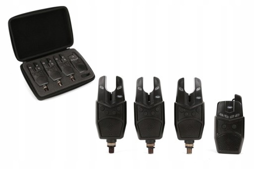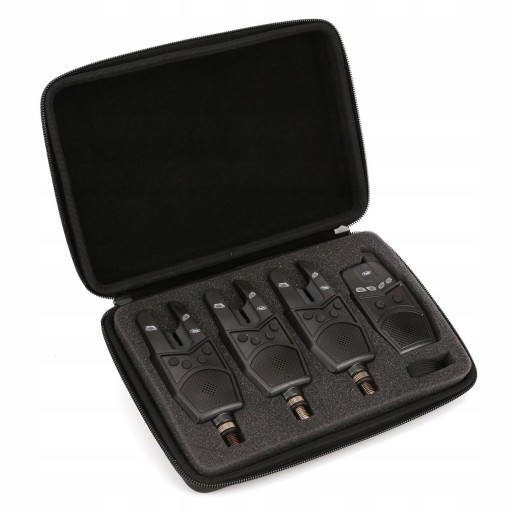 Чудовий набір з 3 сигналізаторів клювання з блоком управління, упакований у зручну валізу з губкою всередині для захисту виробу від різних пошкоджень.