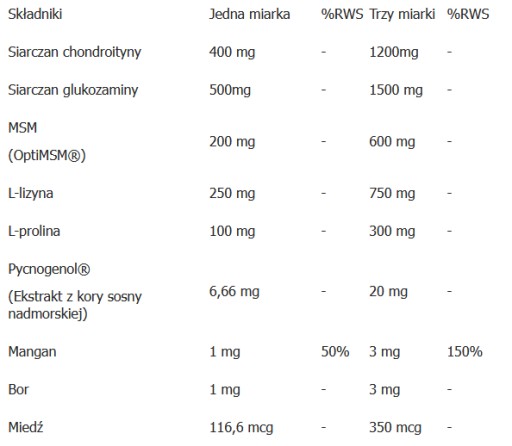 Крім того, продукт містить L-лізин і L-пролін - основні амінокислоти, що входять до складу білків колагену, і мінерали: бор, а також марганець і мідь - беруть участь у правильному формуванні сполучної тканини і підтримці її належного стану.