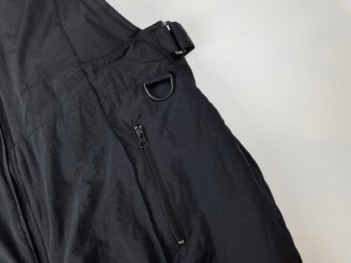 - Чорні снігові штани. Штани мають регульовані підтяжки. Застібається спереду на блискавку. Вони мають додаткові регулювання на талії на липучках. Внизу штанина застібається на блискавку і застібку, що полегшує надягання. Штани мають функціональні кишені на блискавці. Вони водонепроникні та дихаючі.