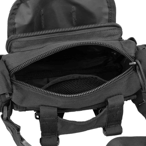 Зовнішні ремені MOLLE, розташовані на самій сумці, дозволяють прикріпити, наприклад, додаткові сумки або аптечку. Сумка має чотири кишені, що застібаються на блискавку з широким профілем, що виключає їх застрявання і протягування матеріалу. Всередині основної та передньої кишень є додаткові відділення, які допомагають упорядкувати речі.