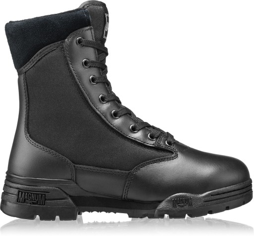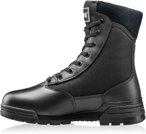 Черевики MAGNUM Classic black - це надзвичайно легке (більш ніж на 10% легше) і зручне тактичне взуття від бренду Hi-Tec Magnum, яке вже не перший рік охоче користується працівниками силових служб та індустрії безпеки. На відміну від звичайного військового взуття, вони добре працюють при динамічному русі в міських умовах. Виготовлені з матеріалів найвищої якості (зерниста шкіра та балістичний нейлон) - це поєднання комфорту, надійності та функціональності.