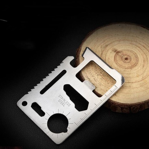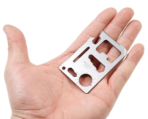 - Картка виживання невеликого розміру (мультиінструмент), яку можна носити в гаманці, тому ви завжди матимете її з собою на випадок надзвичайної ситуації.