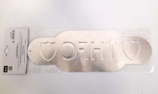: Виготовлена з металу, пофарбована, з отворами для кріплення на стіні, пам’ятна дошка з адресами лондонського клубу «Тоттенхем Хотспур», оформлена в стилі ретро, відсилаючи до оригінальної дошки з 1960-х і 1970-х років. На ньому зображений старий герб ФК «Тоттенхем Хотспур», скорочена назва клубу та рік його заснування. Упаковується етикетка з голограмою клубу. Це офіційний сувенір Шпор.