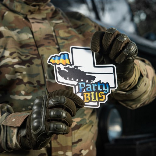 Бренд M-Tac створив оригінальний стікер, присвячений контрнаступальним операціям захисників України. Наклейка у формі білого прямокутного хреста із зображенням танка віщує успіх бійцям і перемогу Україні. Саркастична табличка «Party Bus» сповіщає про гарячу вечірку для окупантів.