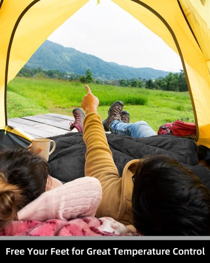 2в1 - спальний мішок також можна розділити на два спальники EINZEL за кілька секунд. Він має блискавки з обох сторін, тому кожен може легко вийняти його зі спального мішка, не заважаючи іншій людині. Ви також можете повністю відкрити його і розкласти, перетворивши спальний мішок на дві окремі великі ковдри.