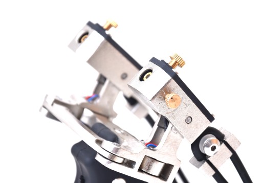 - Два червоних лазерних прицілу, встановлені у верхній частині рогатки, коли приціли включені, працює один, але завдяки перемикачу, розташованому на ручці, ми можемо швидко визначити, який приціл (правий чи лівий) ми хочемо використовувати при в даний момент прицільні пристосування додатково регулюються по вертикалі і горизонталі розміщеними гвинтами у верхній частині і збоку. Вони живляться від 2х батарейок ААА (маленьких пальчикових), які додаються в набір і знаходяться в ручці рогатки.