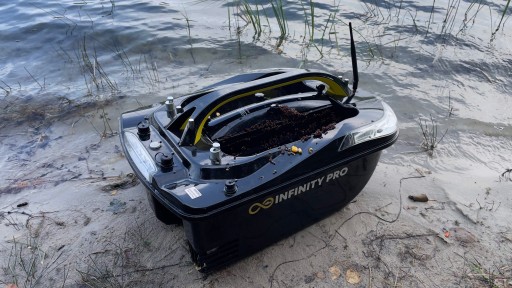 Найважливішою особливістю човна для наживки INFINITY PRO є можливість використовувати всі технологічні вдосконалення, доступні на ринку, без необхідності транспортувати всі елементи окремо. Управління човном INFINITY PRO здійснюється за допомогою контролера, який містить усі ці елементи, нам не потрібна додаткова підставка з ехолотом, тому що всі показання відображаються на вбудованому дисплеї в пульт дистанційного керування.