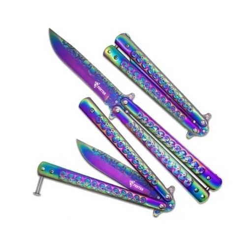 ✅ Красиво виблискуючий усіма кольорами веселки, ніж-метелик є чудовим інструментом для тренувань.