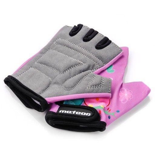 Велорукавички Meteor захищають найчутливішу зону руки. Внутрішня частина виконана з ніжної, м'якої екошкіри. Матеріал доповнений пом'якшувальними вставками з поролону. Зовнішня частина виконана з м'якого матеріалу з кольоровим принтом.