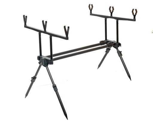 Універсальний rod pod для тих, хто шукає стійку триногу, з можливістю розміщення до 3 вудок одночасно, підставка побудована на подвійній рамі. Кут нахилу вудилищ можна регулювати декількома способами, в тому числі, регулюючи базбари, довжину ніжок і довжину підставки, що дозволяє адаптуватися до будь-яких умов на угідді. Підставка чорна або темно-зелена в залежності від наявності.