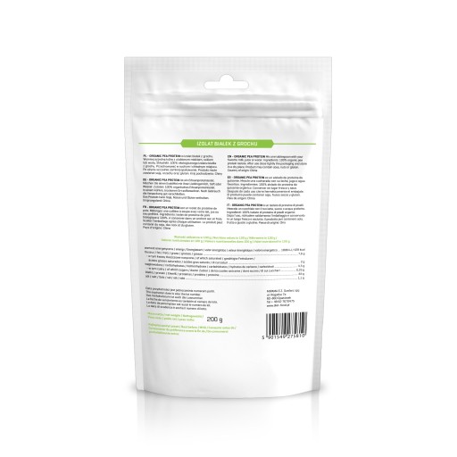Organic Pea Protein є чудовою добавкою до амінокислот для людей, які не переносять глютен або білок коров'ячого молока. Підходить для веганів і вегетаріанців - це рослинний продукт. Вбирається повільно. Рекомендовано для людей, які інтенсивно тренуються, активні та бажають мати струнке та спортивне тіло. Наші білки походять з органічного немодифікованого гороху.