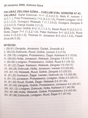 Стан: ДУЖЕ ДОБРЕ Обкладинка: м'яка Розміри (см): 21 (висота), / 15 (ширина) Колір: не використовувався Клуби: Stal Gorzów Wielkopolski, ZKŻ Kronopol Zielona Góra, Falubaz Zielona Góra Використовувані дисципліни: спідвей Статистика, таблиці: так