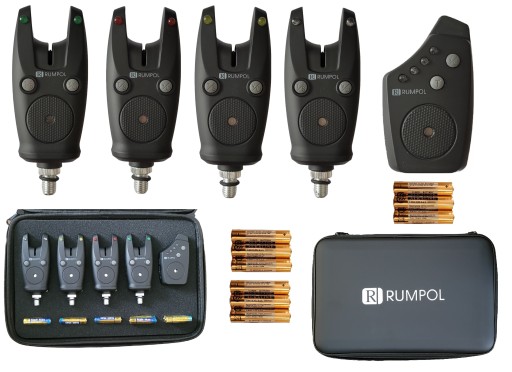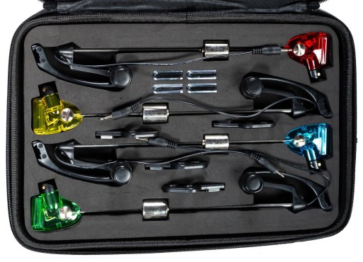4x сигналізатор клювання Rumpol + блок управління в зручному футлярі, наповненому захисною піною + 4x електронний свінгер у футлярі