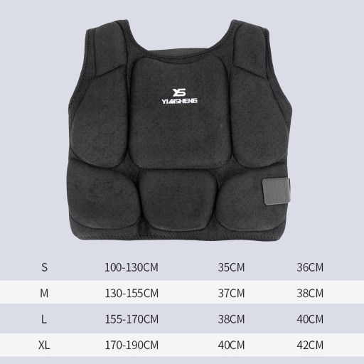 Вставка з товстого поролону всередині запобігає ударам і ударам грудей, живота, ребер, поглинаючи і розподіляючи силу.