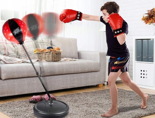 Тренувальний набір для боксу, що складається з пружинного боксерського мішка та рукавичок.