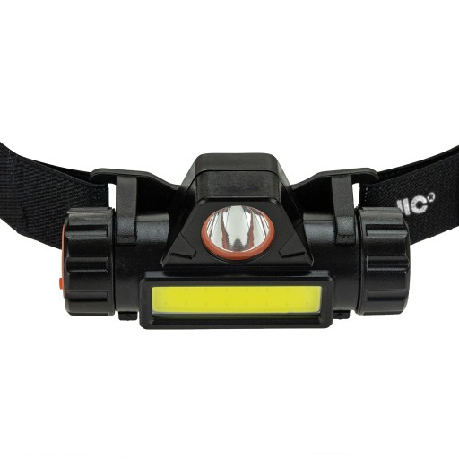 Ліхтарик оснащений двома відбивачами - широким і вузьким. Вузький має 1 потужний світлодіод, який світить на відстані до 80 м. Широкий оснащений стрічкою COB з 16 діодами, яка освітлює площу до 10 м. Кожен з відбивачів має вбудований у регулюванні яскравості - просто утримуйте кнопку ввімкнення довше, і світло зміниться на 100 м. %, тобто світитиме з потужністю 30 %. Промінь світла ліхтарика можна регулювати до 90°. Ліхтарик має магніт, що дозволяє легко кріпити його до металевих поверхонь. Заряджається кабелем microUSB довжиною 50 см, який входить в комплект. USB-вхід захищений водонепроникним ковпачком. Ліхтарик вирізняється світловідбивачами, надрукованими на смузі, які забезпечують кращу видимість під час роботи або роботи в темряві. Пов'язка виготовлена з високоякісного матеріалу і регулюється під будь-який розмір голови.