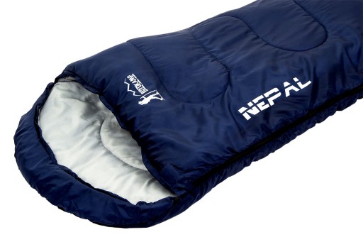 NEPAL NAVY SLEEPING BAG 210X80x50CM - практичний спальний мішок у формі мумії, звуженої донизу. Ідеально підходить для шкільних екскурсій, походів і сімейних подорожей під наметом. Він наповнений спеціальним поліефірним волокном щільністю 250 г/м2, яке не вбирає вологу, є антиалергічним, швидковисихаючим і легким, а спеціальна строчка по всій поверхні матеріалу спальника запобігає його зсуву. Капюшон на шнурку дозволяє вільно регулювати його ширину і захистить голову від холоду. Форма мумії довше зберігає тепло всередині та адаптується до вашої форми.