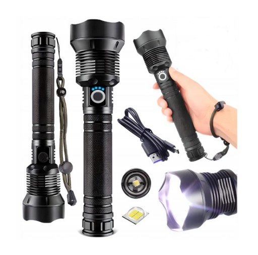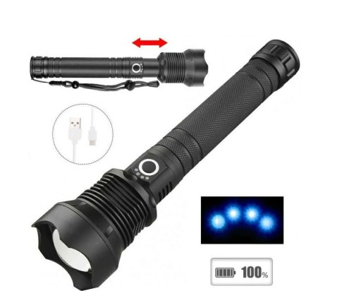 Ліхтарик з великим світломЦей надзвичайно яскравий ліхтарик використовує світлодіодний чіп останнього покоління XPH70.2 із терміном сл ужби 100 000 годин. Він може виробляти світло з високим люменом. 3 режими освітлення, високий / низький / спалахи, ви можете вибрати п отрібний режим.
