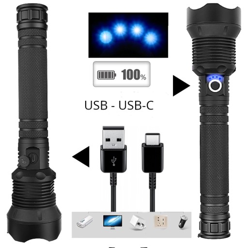 USB-зарядкаВбудований вхідний порт TYPE-C, через який зручно т актичний ліхтарик.