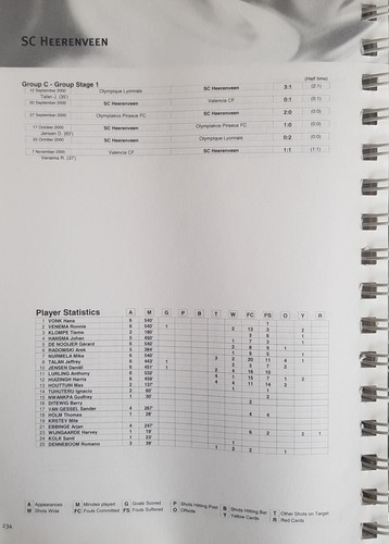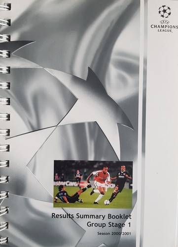 : Офіційне видання УЄФА, що представляє у формі підшивки результати всіх матчів першого етапу групового етапу Ліги чемпіонів у сезоні 2000/2001. Кожен матч описується за однаковою схемою - дата та місце гри, результат, автори голів, склади, включаючи заміни та статистика обох команд (удари, удари у створ воріт, кутові удари, фоли, володіння м'ячем тощо). , а також надаються післяматчеві коментарі тренерів/гравців обох команд. Крім того, видання наводить статистику всього змагання на цій стадії (класифікація бомбардирів, рейтинг жовтих і червоних карток, гравці, на яких найчастіше фолять, результативні інтервенції воротарів тощо). Все написано англійською.