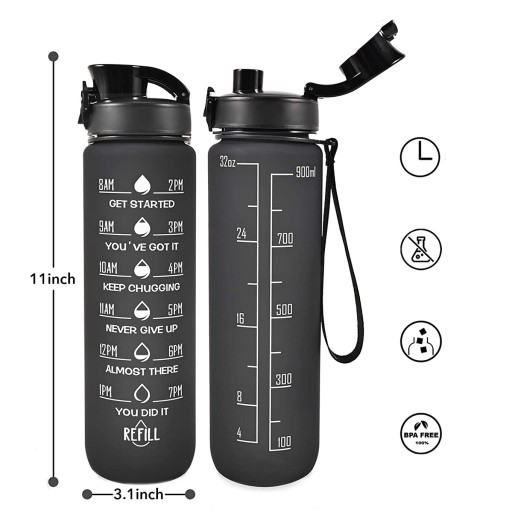 Пляшка для води розроблена з мітками часу та максимальною заохоченням, щоб допомогти вам випити достатньо води протягом дня. Ємність 1000 мл означає, що наша пляшка не надто важка, коли її наповнюють водою. У той же час він також може задовольнити наші щоденні потреби у питній воді.
