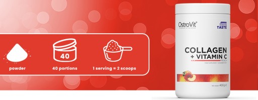 OstroVit Collagen + Vitamin C — найякісніша порошкоподібна дієтична добавка, створена в ароматизованих варіантах лінії OstroVit TRUE TASTE. Кондиціонер для фізично активних людей і тих, хто має підвищену потребу в колагені і вітаміні С.
