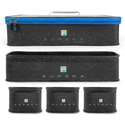 Виготовлений з міцного 100% водонепроникного матеріалу EVA. Система Supera EVA - це унікальний набір для зберігання наживки, який дозволяє безпечно переносити наживку або невеликі аксесуари до місця риболовлі. Система Supera EVA - це унікальний набір для зберігання наживки, який дозволяє безпечно переносити наживку або невеликі аксесуари до місця риболовлі. Розміри: 41x27x10,5 см Містить: 3 контейнери для приманки (12x12x8 см) + 1 контейнер для приманки (39x12x8 см).