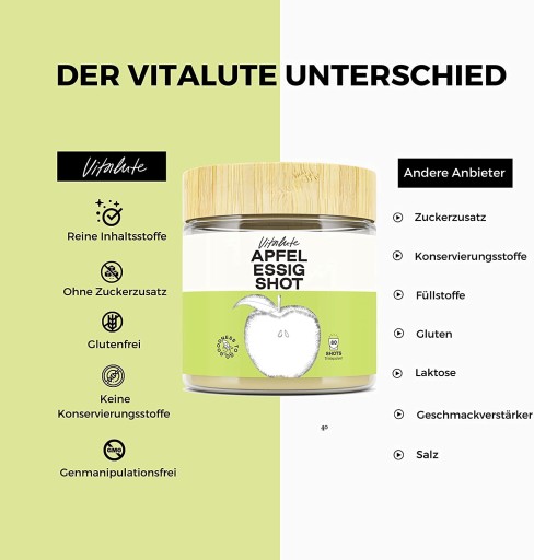 - Повна насолода: кожна банка містить 80 порцій. Просто змішайте з водою. Підходить для щоденного використання як альтернатива капсулам яблучного оцту.