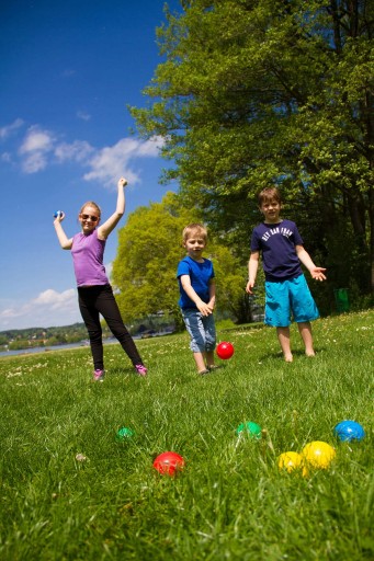 - 4 x 2 різнокольорові м’ячі/м’ячі для гри в бочча, виготовлені з пластику. Вага м'яча (прибл. 185 г)