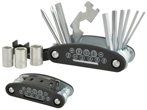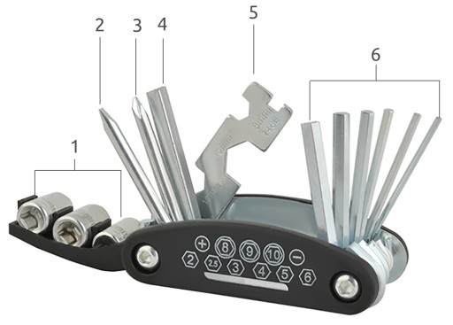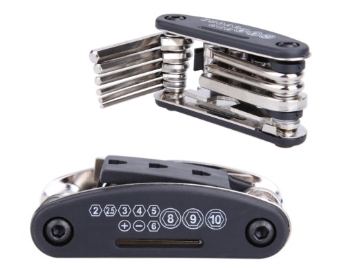 Компактний набір ключів можна брати з собою всюди. Це може стати в нагоді не тільки під час велосипедної подорожі! Гайкові ключі, що входять в набір, універсальні, що дозволяє проводити дрібний ремонт.