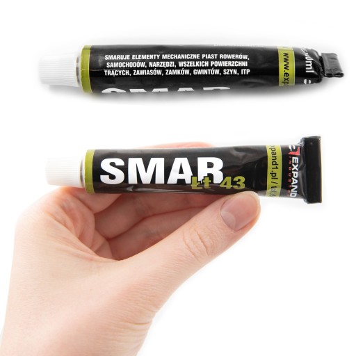 EXPAND Мастило універсальне ŁT-43. Призначений для рухомих елементів, особливо підшипників у втулках, головках, нижніх кронштейнах і педалях. Він зберігає, витісняє воду і зменшує тертя. Захищає компоненти від проникнення води та захищає від корозії.