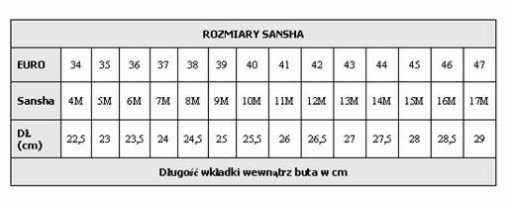 Нижче наведено калькулятор розмірів Sansha. Цей коефіцієнт перетворення може відрізнятися від того, що ви можете прочитати на етикетці взуття. Компанія Sansha часто занижує або завищує свій розмір, через що інформація на етикетці не відповідає дійсному розміру взуття. Як виміряти устілку взуття.