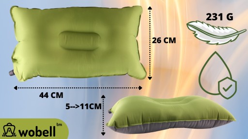 - ✅Легка та водонепроникна - подушка важить лише 231 г. Виготовлений з міцного поліестеру за технологією Ripstop 210 T. Цей матеріал має властивості швидкого висихання. Завдяки цьому волога, яка природним чином виникає вночі, швидко випарується в атмосферу, що підвищить комфортність сну