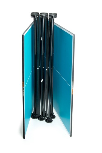 - Після закінчення ігор стіл можна скласти - стільниця розділена навпіл і з'єднана петлями - вона складається навпіл до розміру 91 х 91 см. Такий складений верх не займає багато місця.