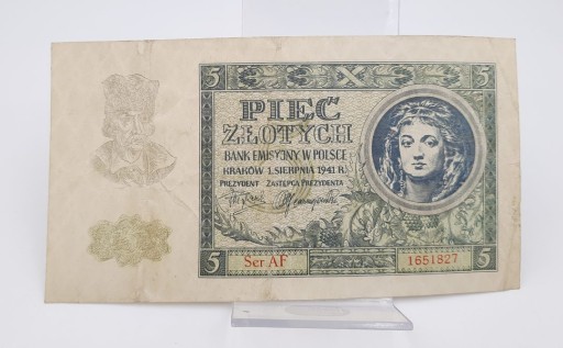 Стара колекційна банкнота Польща 5 злотих 1941 р