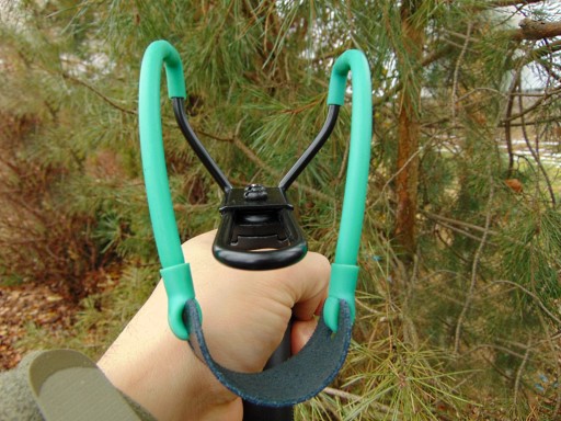 Рогатка оснащена гумками HiTec і кошиком для метання з екологічної шкіри.