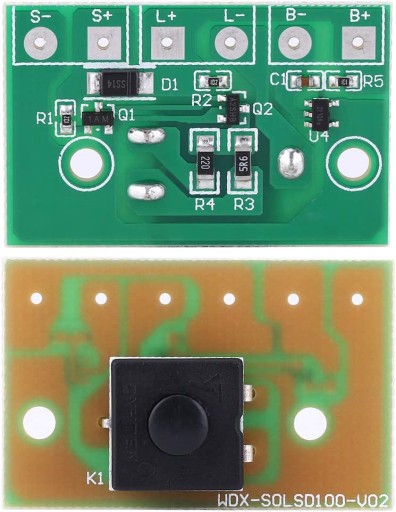 Параметри Панель керування сонячною лампою Спеціальна лампова панель акумулятора 37 В — 3032 В, паралельна напруга сонячної панелі — 6 В Модуль драйвера сонячної лампи, висока ефективність перетворення, тривалий час освітлення, кульки високої яскравості Захист від перезаряду та надмірного розряду та трирівнева комутаційна панель керування освітленням, сонячне світло для газону має захист від перезаряду та перерозряду та трирівневе відключення світла на повну потужність низька потужність для задоволення ваших потреб акумулятор добре зроблений та чітке підключення контролер сонячного світла забезпечує стабільну роботу ви можете заряджати цей кемпінговий ліхтар від сонця або USB-порту відповідно до вашої поточної ситуації Проста експлуатація зарядка вдень і освітлення вночі автоматичний цикл без ручного втручання плата контролера сонячного світлового ланцюга з перемикачем живлення та перемикачем режиму освітлення простий у використанні Міцні аксесуари для освітлення газону на сонячних батареях мають довговічність і стабільність, які можуть бути забезпечені панеллю керування та ліхтариком достатньо міцний, щоб використовувати його протягом тривалого часу