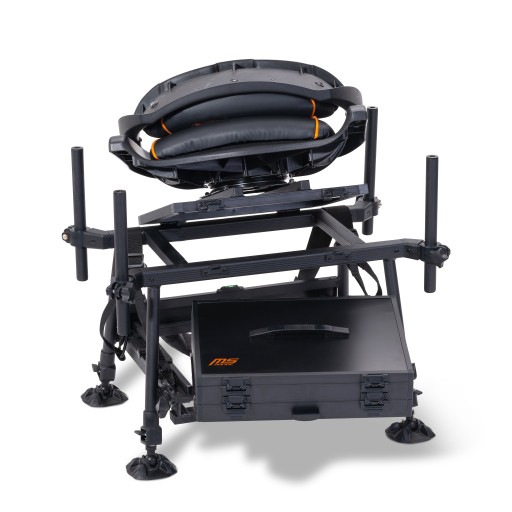 Нове сидіння MS-Range - найкраща основа для комфортної фідерної ловлі. Він оснащений зручним пластиковим сидінням, яке можна повертати та знімати за допомогою шарикопідшипників з міцною оббивкою сидіння та спинки. Ящик під сидінням. Оснащений чотирма плавно регульованими ніжками з широкими ніжками, що регулюються по висоті. Стовпи (діаметр 25 мм) для кріплення аксесуарів (2 зліва, 2 справа). Сильно м'який плечовий ремінь в комплекті. Унизу також є рейки для розміщення опціональної підставки для ніг. Рівень на спинці сидіння дозволяє точно розташувати. Все зроблено зі стійкого до корозії алюмінію та пластику.