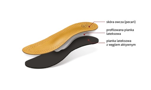 - Вставки виготовлені з гнучких гранул, латексної піни, що містить активоване вугілля, яке ефективно вбирає неприємні запахи, і овчини, яка має хороші гігієнічні властивості - легко вбирає піт.
