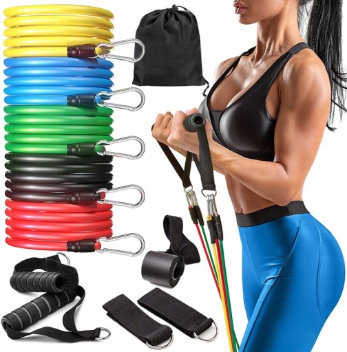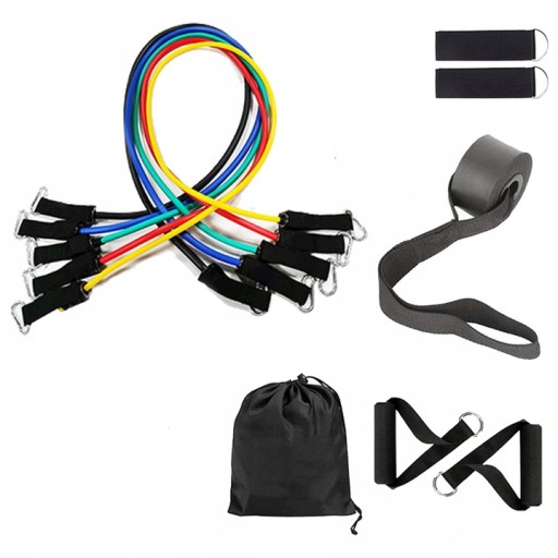 У набір входить 11 різних аксесуарів для вправ, завдяки яким у вас завжди під рукою власний тренажерний зал. З цим обладнанням ви можете займатися вдома або в парку, де тільки знайдеться вільне місце.
