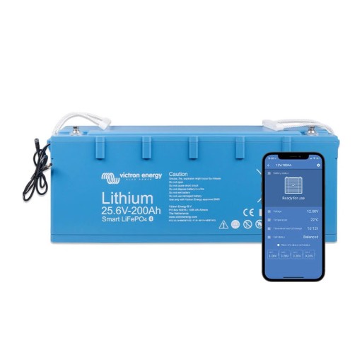 Батарея LiFePO4 повинна працювати з пристроєм BMS, який керує зарядкою батареї та балансує напругу 4 елементів, що надзвичайно важливо. Для батареї LiFePO4 за допомогою програми Victron Connect і підключення Bluetooth ми можемо контролювати напругу батареї, елемент і температуру без необхідності використовувати будь-які вимірювальні пристрої. На літій-залізо-фосфатні батареї поширюється 3-річна гарантія виробника.