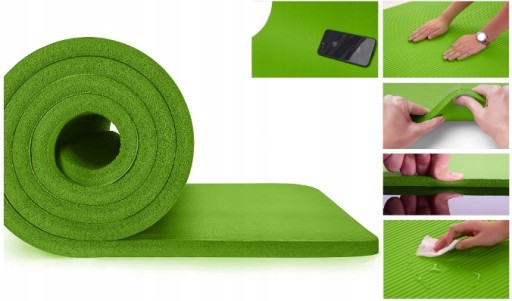 Відповідна товщина килимка дозволяє комфортно виконувати вправи лежачи, на колінах або стоячи. Килимок не деформується під тиском. Крім того, він має протиковзкі властивості, що знижує ризик травм. Він легко згортається і зручний для зберігання і транспортування завдяки ремінцям, прикріпленим до килимка.