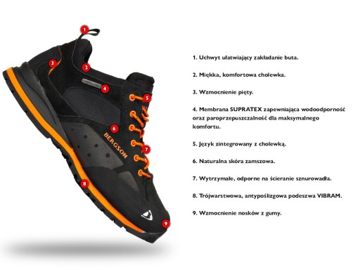 Найсучасніша і найміцніша підошва, яка використовується у виробництві трекінгового взуття. Використані в ньому рішення, такі як самоочисні канали, зони обертання та протиковзкі поверхні, гарантують дуже високий комфорт і безпеку на трасі. Специфікація: Висока стійкість до стирання / Чудове зчеплення з різними поверхнями / Посилений буфер для носків для кращого захисту та зчеплення / Контурна п’ята для безпечного гальмування / Відкритий виріз, що сприяє самоочищенню підошви