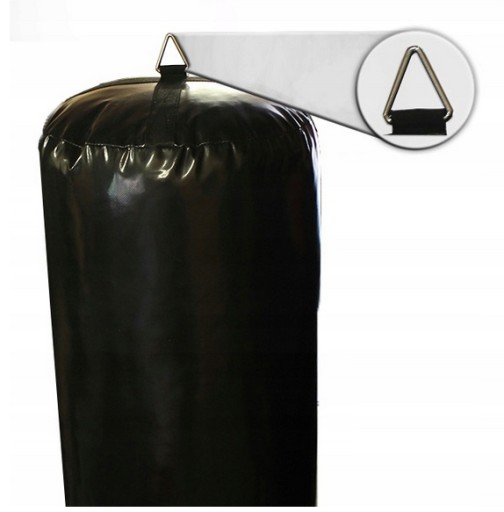 Дно боксерського мішка зміцнюємо подвійними стрічками, що дозволяє кріпити мішок знизу за допомогою металевого трикутника.