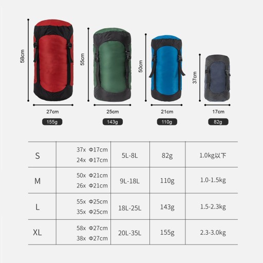 ШИРОКА СФЕРА ЗАСТОСУВАННЯ: цей мішок для зберігання спальника широко підходить для кемпінгу на відкритому повітрі, походів, подорожей, туризму, трекінгу, каякінгу, катання на байдарках, плавання, риболовлі, рафтингу, катання на човнах, вітрильного спорту, серфінгу, відпустки, автофургонів тощо.