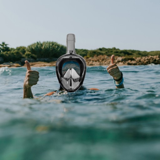 Дайвінг - ідеальне рішення для тих, хто вміє добре плавати. Маска неймовірно зручна і дозволяє дихати як ротом, так і носом під час занурення. Поверхня маски забезпечує видимість до 180°, що дає вам неймовірно широкий кут огляду. На лобі маски можна встановити камеру, наприклад, gopro, яка дозволить записувати навіть найкоротші занурення на карту пам'яті.